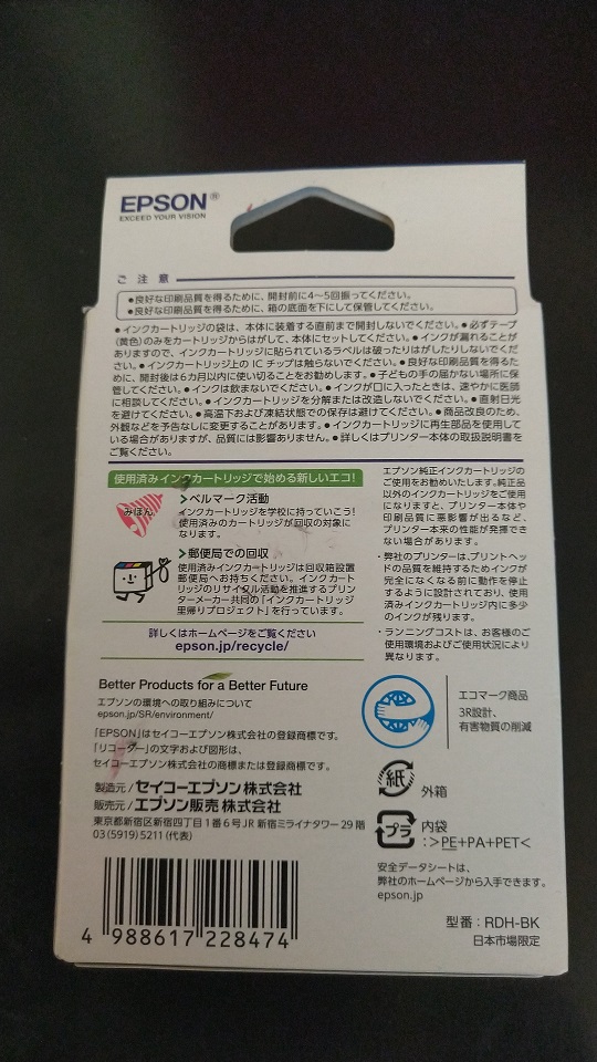 これは、以前所有していた、エプソンの激安プリンターのインクです。いつも予備のインクを自宅に保有していたのだ。