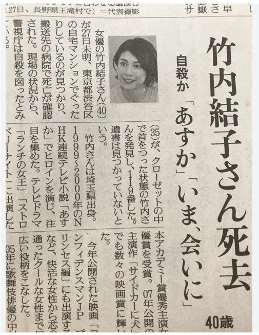 俺は今、42歳だが、竹内結子が40歳までに成し遂げた栄光の0.1%も浴していないぞ。あんまり、若くして大成功するのも考えものだな。だって、もしも竹内結子が40歳になってから漸く日の目を見たとしたら、遅咲きなので、自死なんてしないであろう。底辺への耐性もあるだろうしな。