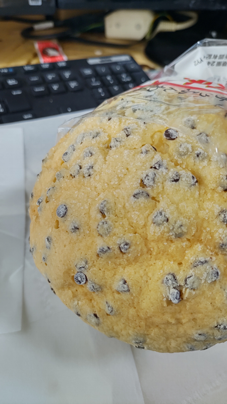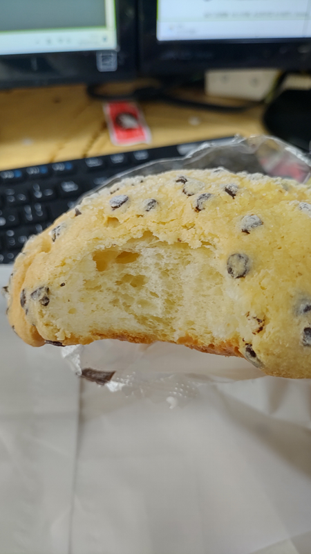 ↓菓子パン(メロンパン)も食べていいよ。だけど、これ、間食に食べるような代物ではないからな。間食にしては、カロリーが多過ぎる。おやつには完全に場違いだから!イニシャルDの峠のバトルに、ルーミーとかタントで参戦するくらい場違いだから。