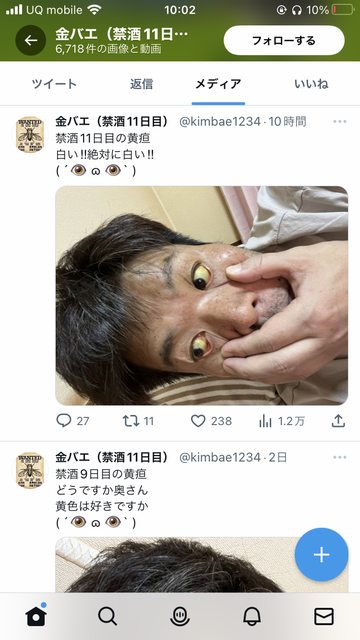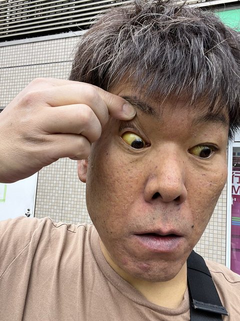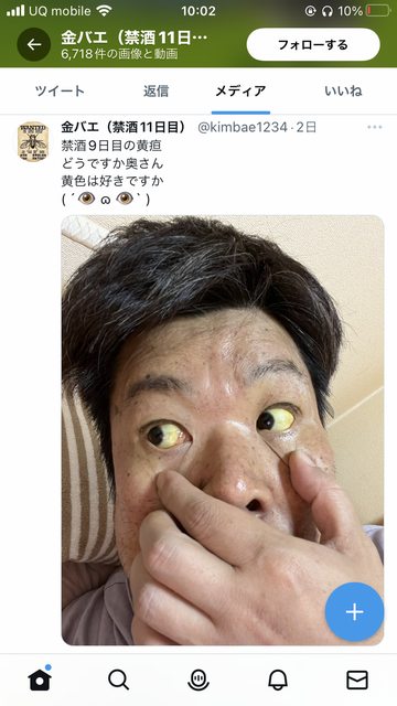 俺が1981年12月17日生まれなのです。んで、金バエさんは1977年3月生まれなのです。なので、え~と、四年と九か月違いか。今は46歳らしい。独身です。んで、病状は、アルコール性肝硬変、蓄膿症、痔、らしい。まあ、目が病気の影響で黄色くなっていますね。