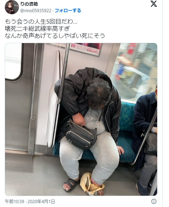 左足が壊死したのに治療を拒み、物凄い悪臭を漂わせながら電車でうろついていたことで有名になった通称〔左足壊死ニキ〕。こうなりたいですか?