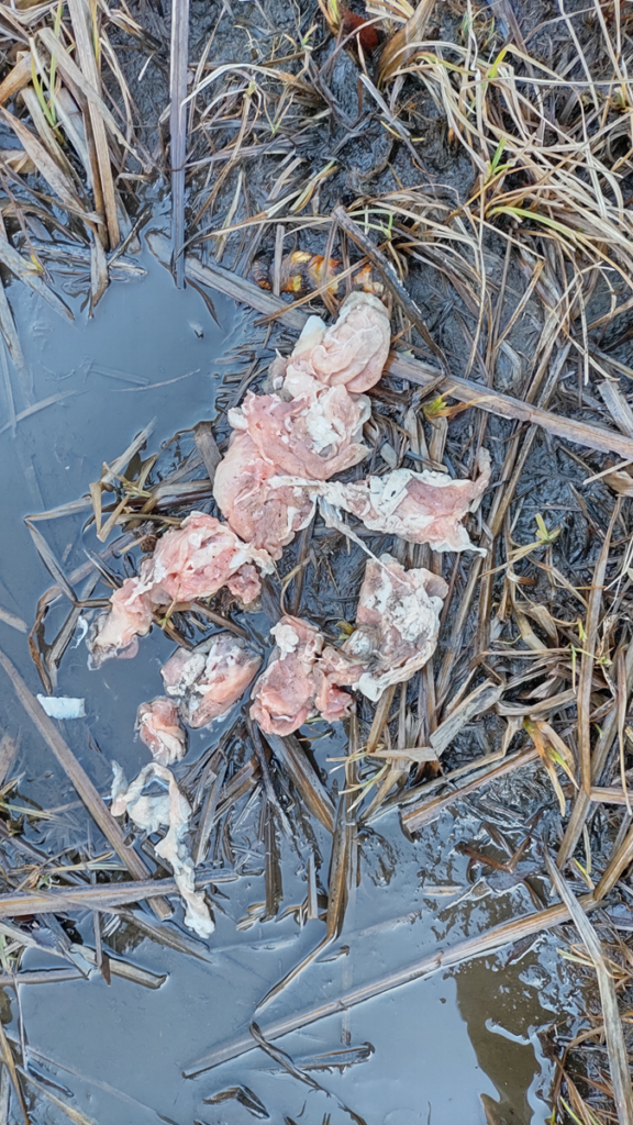 あああ、酪農家の人が育てた牛肉だっけか?豚肉だっけ?忘れたが。あと漁師が獲ったタラ、両方、無駄になりました。全く人の体内に入ることなく、微生物に分解されることとなりました。全くの無駄ですね。生産した意味がない、そして漁獲した意味がない分解の仕方となりました。