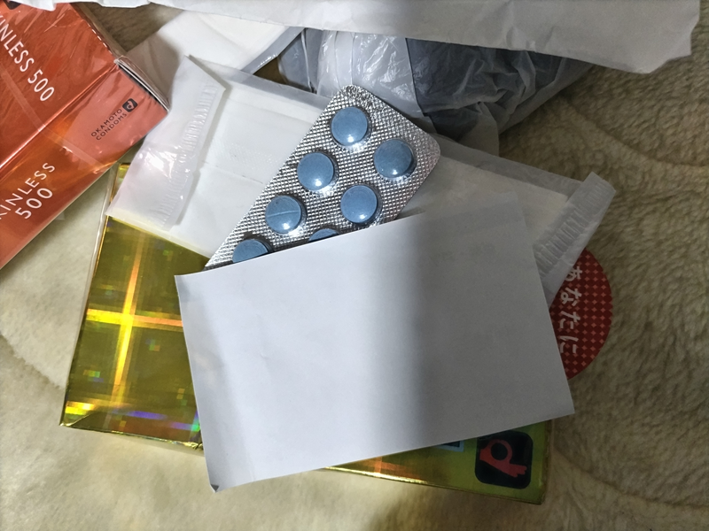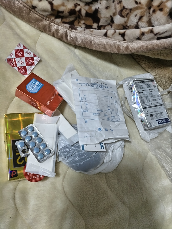 私の袋の中に入っていたコンドームとバイアグラ。